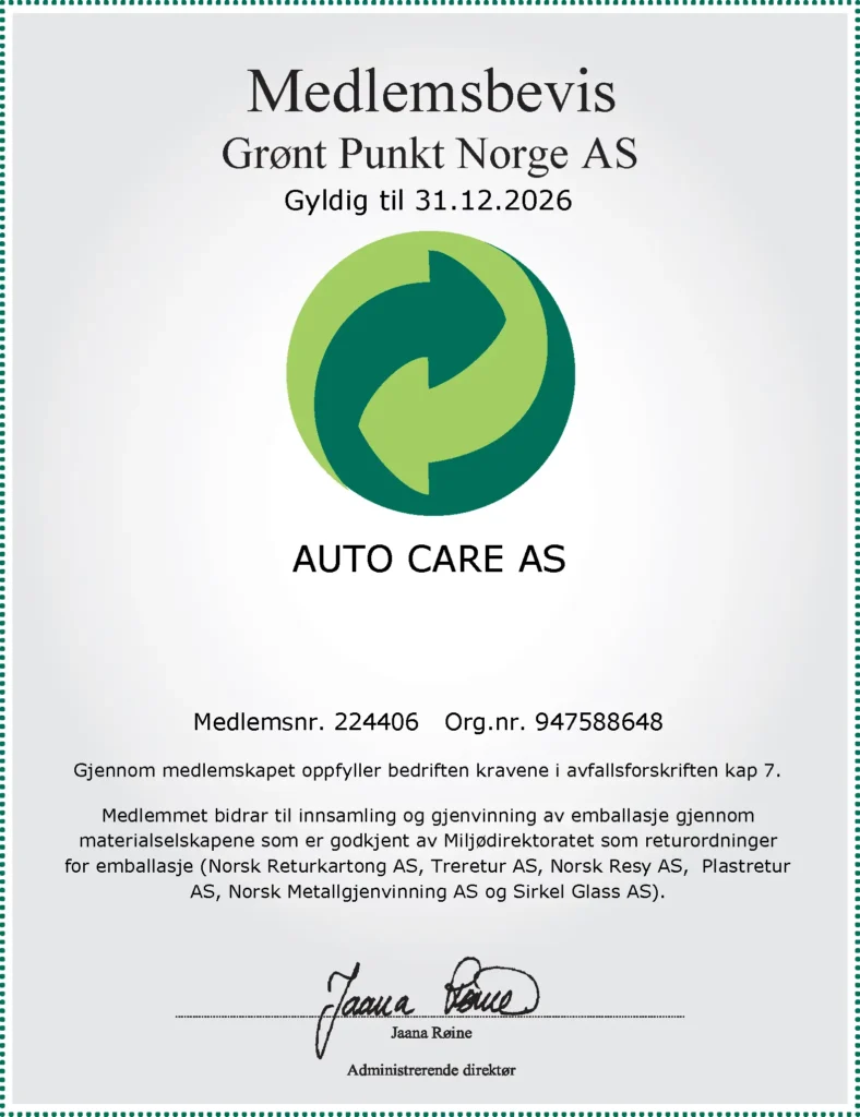 Auto Care er med i Grønt Punkt Norge.